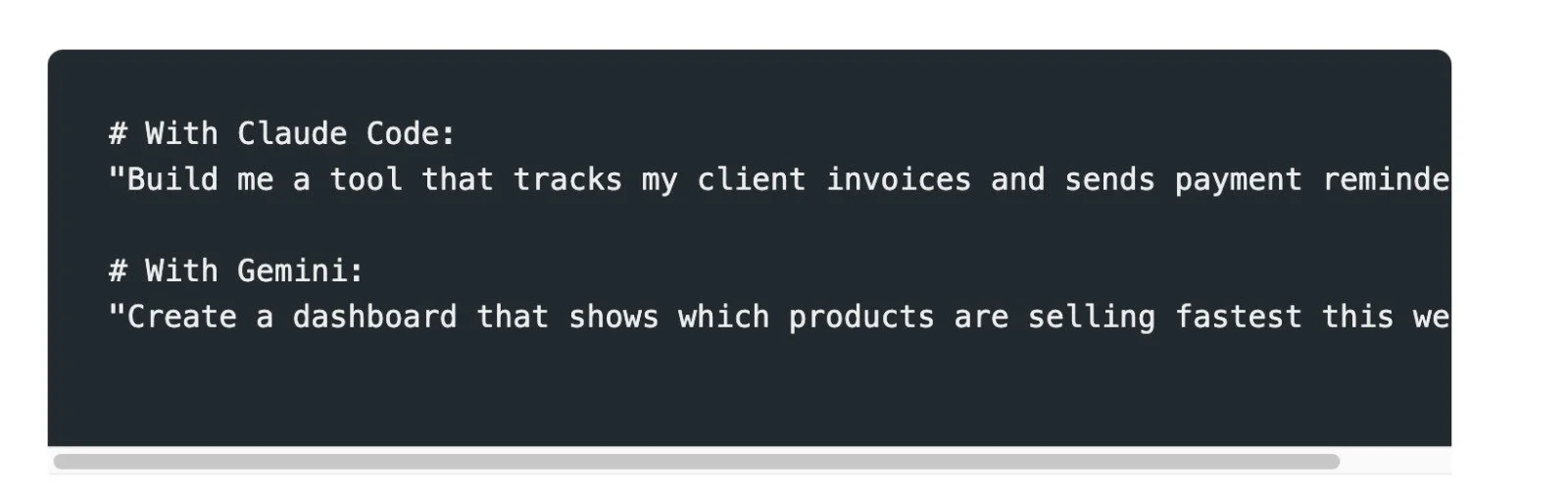 Claude: “Build me a tool to track client invoices and send payment reminders.”